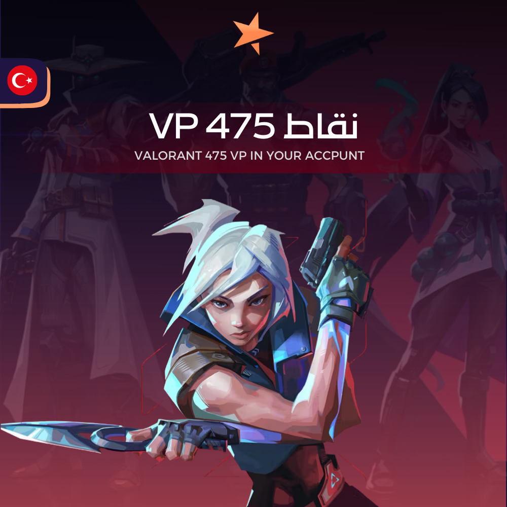 نوع المنتج: خدمة رقمية (تفعيل مباشر) احصل على 475 Valorant Points (VP) بشكل مباشر في حسابك داخل لعبة فالورانت. الكمية: 475 VP طريقة التفعيل: شحن مباشر لحسابك (يتطلب تزويدنا ببيانات حساب Riot ID ريجون تركي ) وقت التنفيذ: خلال مدة قصيرة من ساعة الى 24 ساعة ك حد اقصى تنويه مهم: المنتج عبارة عن شحن نقاط داخل لعبة Valorant. لا يمكن استرجاع المبلغ بعد إتمام عملية الشحن. يجب التأكد من صحة بيانات الحساب قبل إتمام الطلب لتفادي أي تأخير.