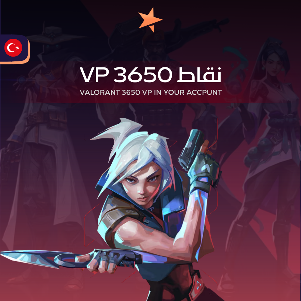 احصل على 3650 نقطة VP في حسابك داخل لعبة Valorant، العملة الافتراضية الرسمية من Riot Games. تُستخدم نقاط VP لشراء محتويات متنوعة داخل اللعبة، تمنحك حرية أكبر في تخصيص تجربتك.