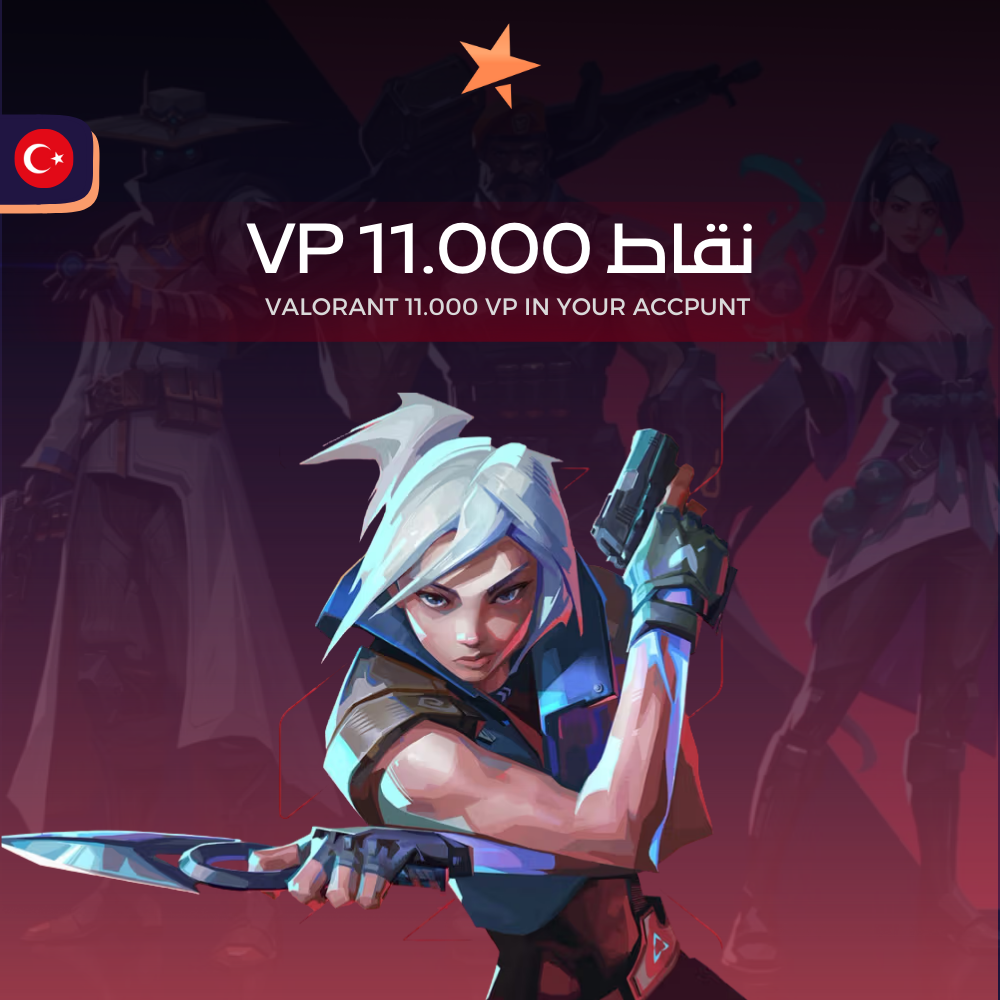 احصل على 11.000 نقطة VP في حسابك داخل لعبة Valorant، العملة الافتراضية الرسمية من Riot Games. تُستخدم نقاط VP لشراء محتويات متنوعة داخل اللعبة، تمنحك حرية أكبر في تخصيص تجربتك.